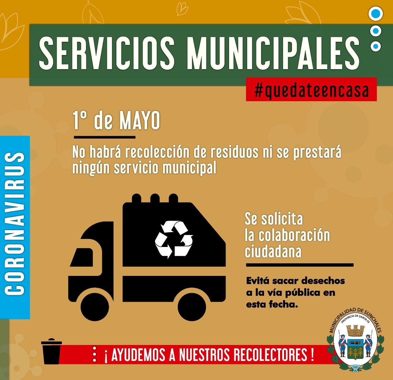 Se destaca que se suspenderá la habitual recolección de residuos.