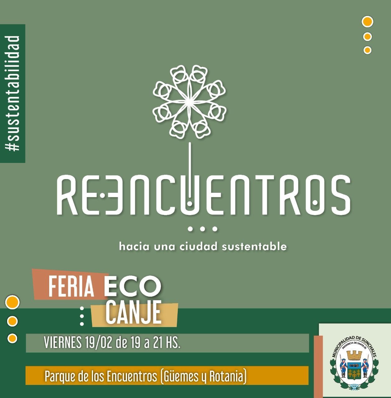 El próximo viernes 19 de febrero, se realizará la tercera edición de la Feria ReEncuentros, proponiendo nuevamente como atracción principal el “ECO-CANJE”. Desde las 19 hs. en el Parque de los Encuentros, se podrán canjear materiales reciclables por “Monedas Verdes” y así adquirir algunos de los productos de las Instituciones que participarán nuevamente de esta edición.
