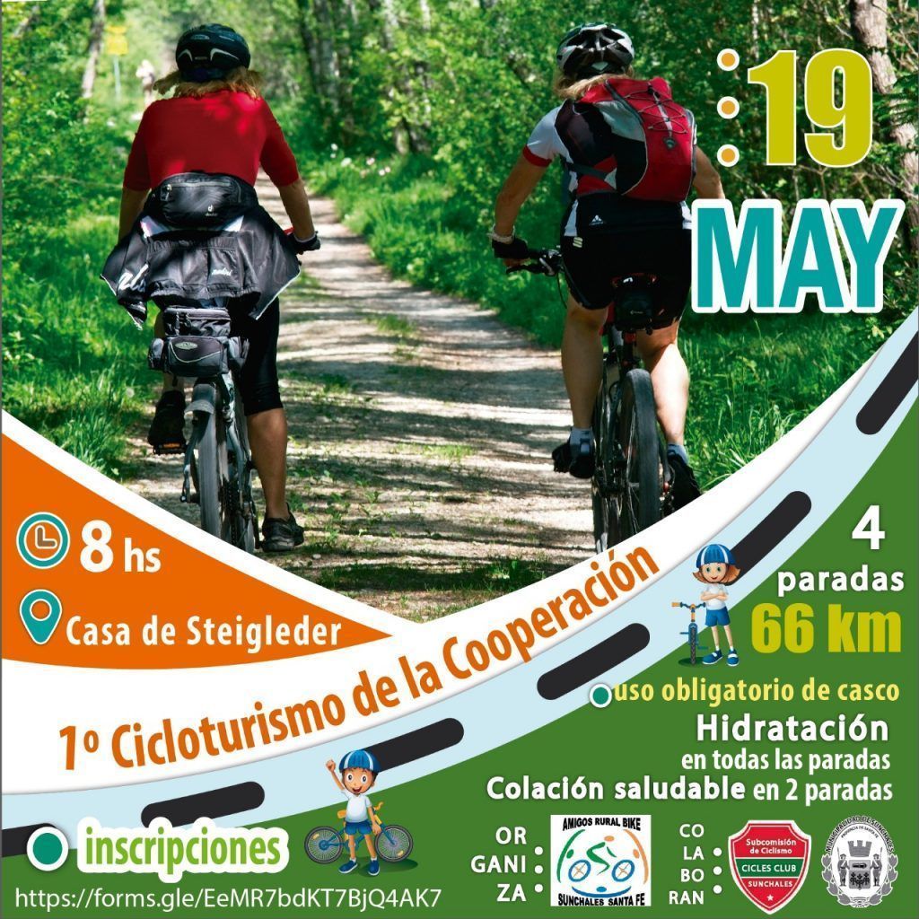 La Municipalidad de Sunchales invita a participar del 1º Cicloturismo de la Cooperación, el próximo domingo 19, a las 8 hs., en Casa de Steigleder.