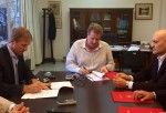 La firma se realizó ayer miércoles 31 de agosto en la ciudad de Buenos Aires y estuvieron presentes el secretario de Seguridad Interior Gerardo Milman, el intendente de Sunchales Dr. Gonzalo Toselli y funcionarios de su gabinete.