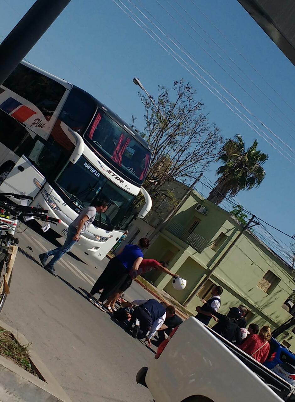 Un micro de la empresa ETAR, chocó a una bicicleta cuando ya emprendía su viaje hacia Rafaela. La mujer que circulaba en el rodado por Joaquín V. González, tuvo que ser asistida por el Servicio de Emergencias 107. Actuó la GUS y personal de la Comisaría 3ra. (Foto: Móvil Quique).