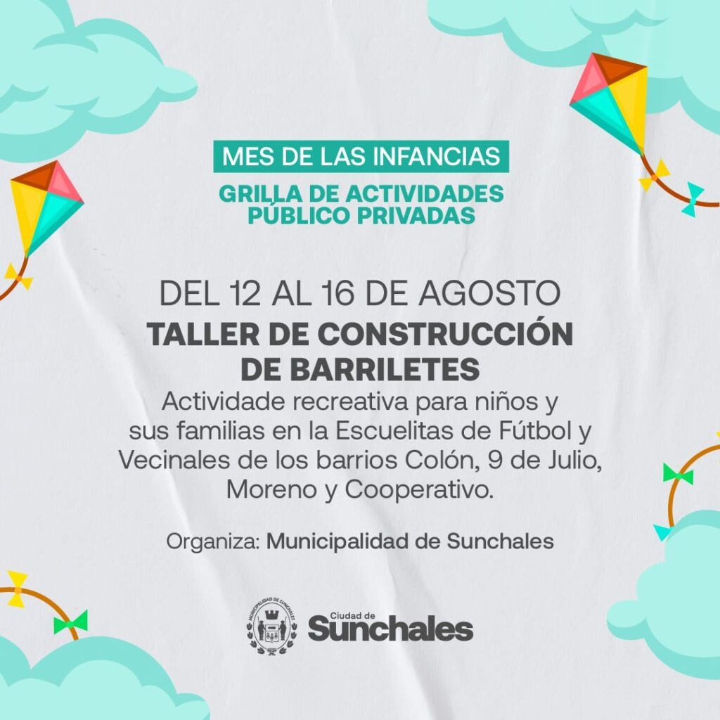 Del 12 al 16 de agosto – Taller de construcción de barriletes, para niños y familias en las Escuelitas de Fútbol de las Vecinales de los barrios: Colón, 9 de Julio, Moreno y Cooperativo.