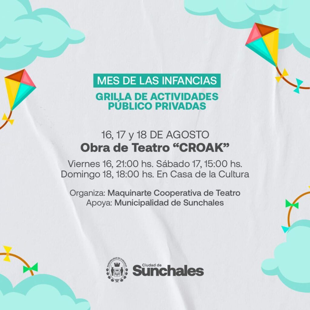 16, 17 y 18 de agosto – Obra de Teatro “CROAK”, en Casa de la Cultura.