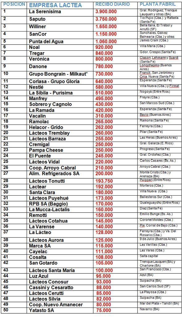 Tras la publicación del ranking de las primeras 50 empresas lácteas de la República Argentina, hubo mucha tela para cortar y algunas correcciones. Lo primero que rebotó fuerte en las redes es la cercanía de Saputo con la histórica líder Mastellone Hnos. (Fuente: TodoAgro)