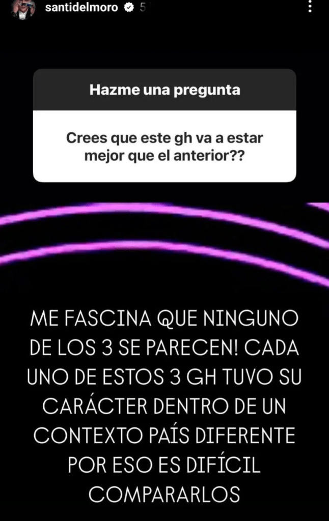 Después, otra usuaria le preguntó si creía verdaderamente que esta edición sería mejor que la anterior pero ahí no se la jugó: "Me fascina que ninguno de los 3 se parece. Cada uno de estos 3 GH tuvo su carácter dentro de un contexto de país diferente, por eso es difícil compararlos".