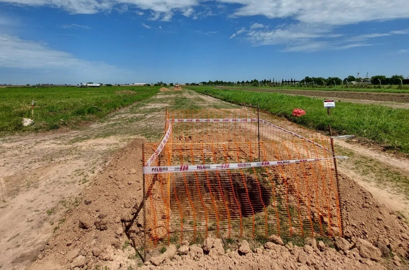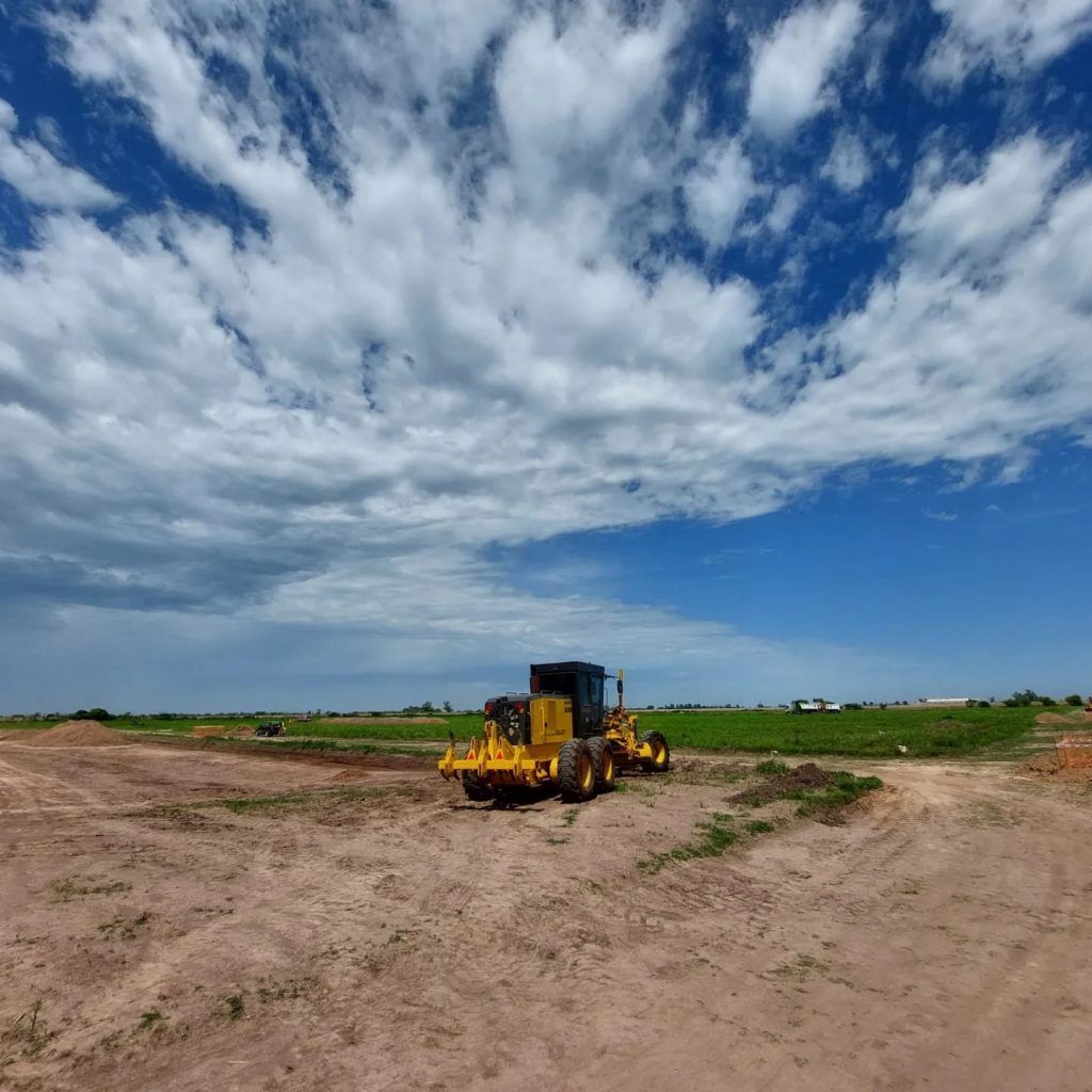 Actualmente, se están llevando a cabo tareas de excavación de boca de registro para el sistema de cloacas, agua potable y movimiento de suelos para la infraestructura vial e hídrica.