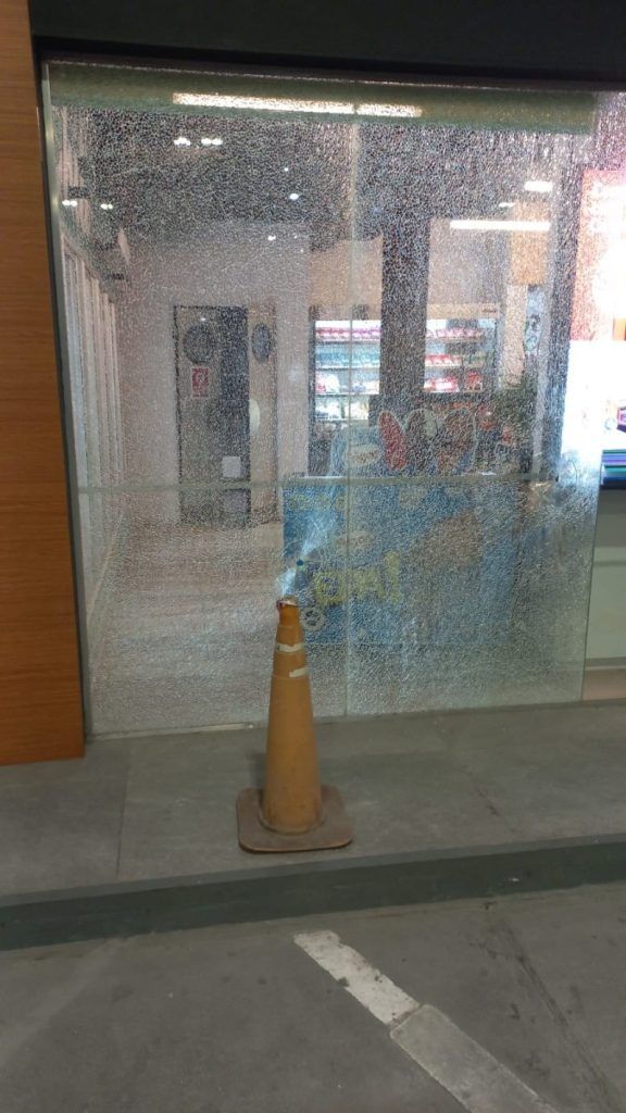 Algunos de los impactos dieron en el vidrio del shop de la estación de servicios, que se hizo añicos.