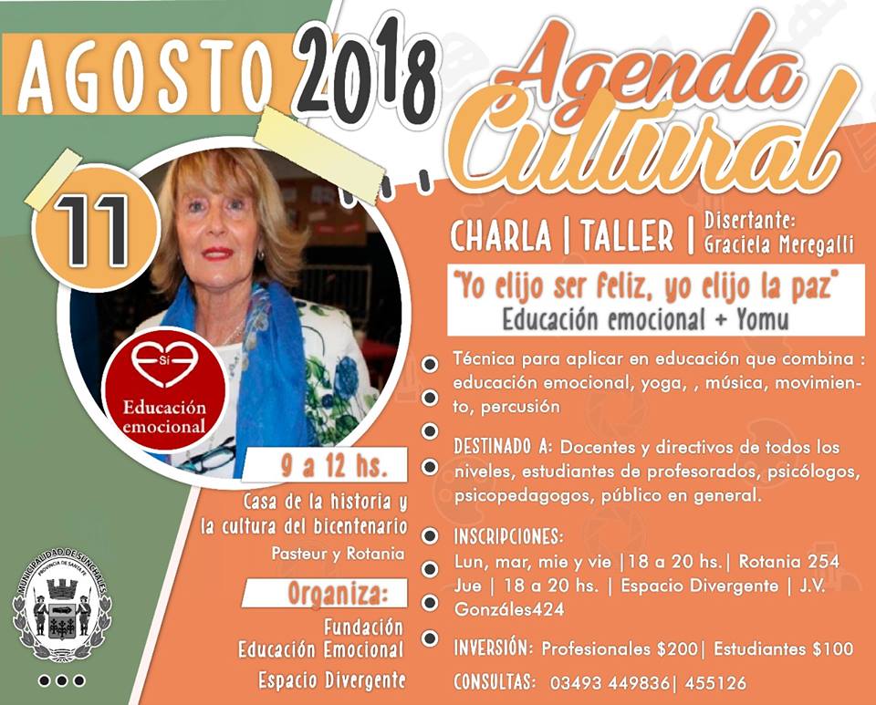 Es organizado por la Fundación de Educación Emocional y Espacio Divergente. Se llevará a cabo este sábado entre las 09:00 y las 12:00 horas en Casa de la Historia y la Cultura del Bicentenario. La disertación estará a cargo de Graciela Meregalli.