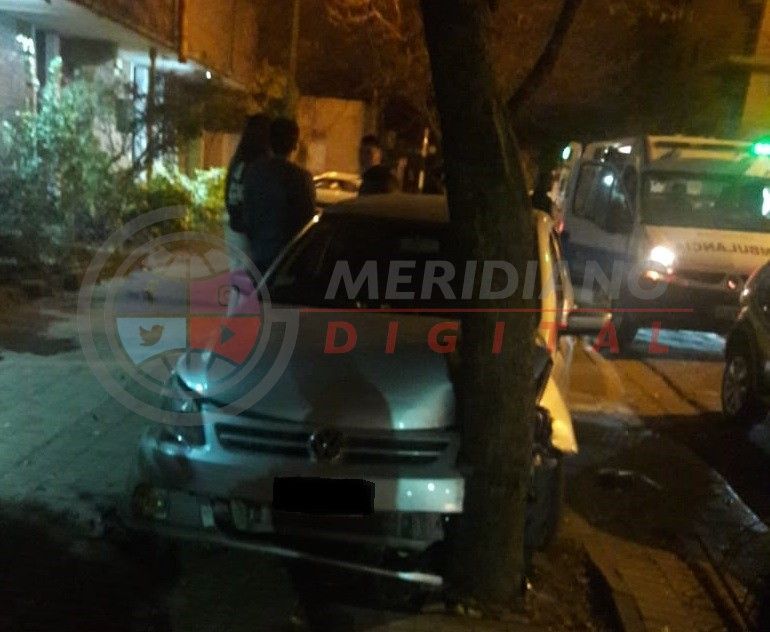 Chofer perdió el control y terminó chocando un árbol en la madrugada