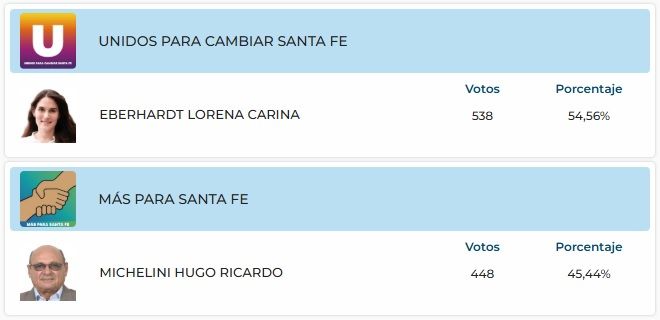 La joven representante de Unidos para Cambiar Santa Fe superó por poco menos de 100 votos al histórico presidente comunal con 22 años de mandato.