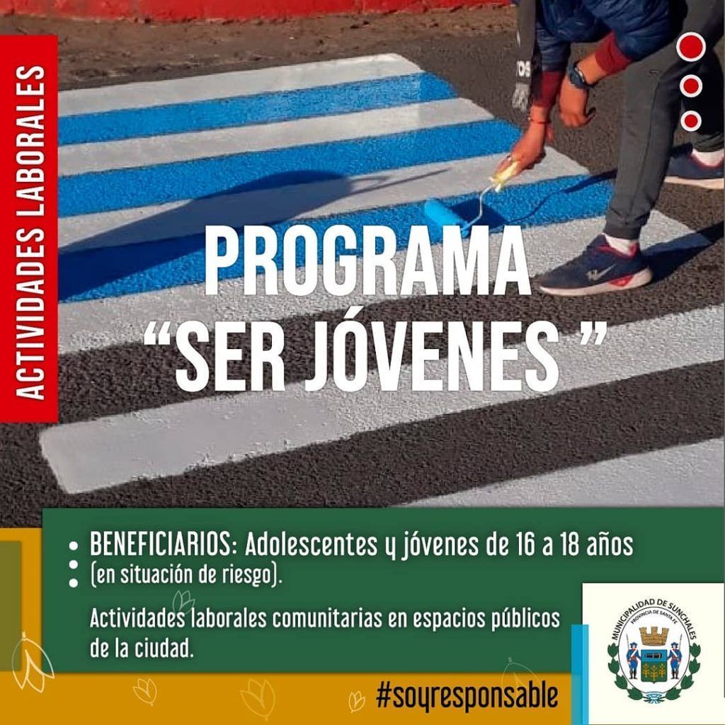 Ser Jóvenes es un Programa que tiene como premisas la contención, capacitación y etapa pre laboral, destinado a adolescentes de 16 a 18 años, que no se encuentran insertos en el sistema educativo formal.