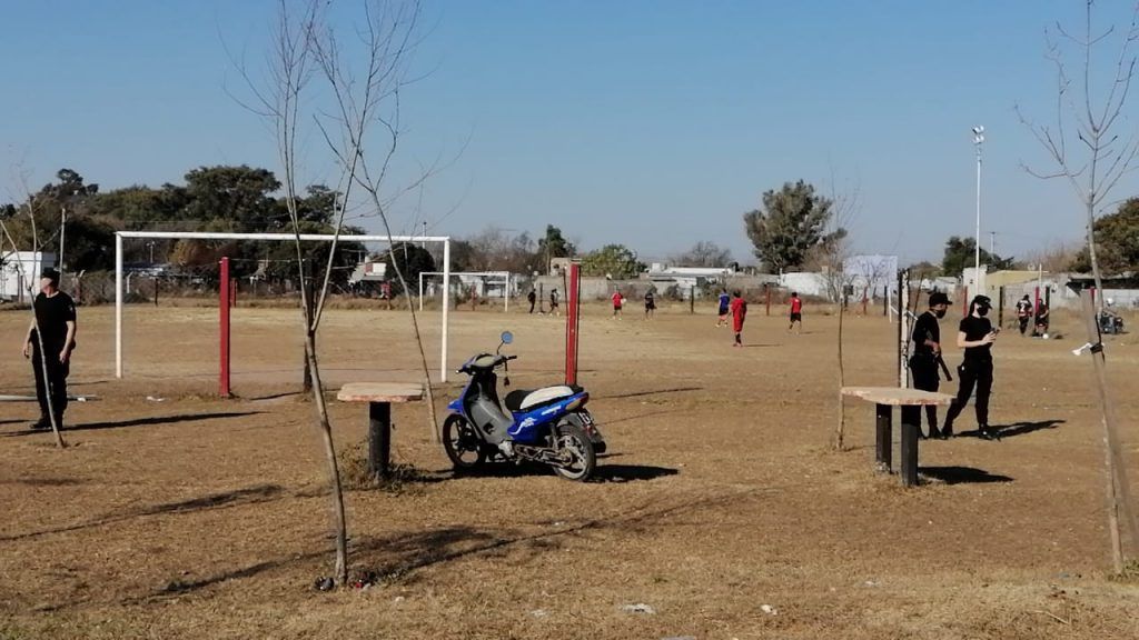 Durante la jornada de ayer sábado y con un clima inmejorable para hacer uso de los espacios verdes, muchos vecinos se vieron tentados de jugar un partido de fútbol. No obstante y continuando con la tarea iniciada durante la semana pasada, fuerzas de seguridad recorrieron determinados lugares donde dispersaron dicha actividad deportiva.