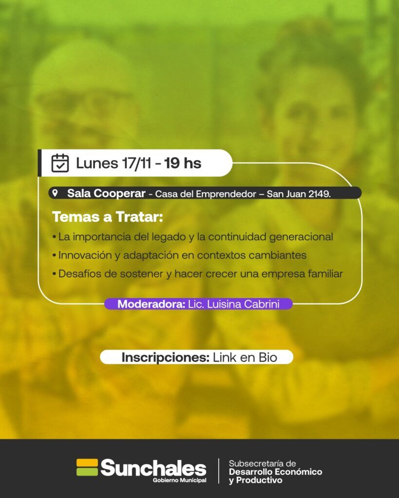 La actividad estará moderada por la Lic. Luisina Cabrini y busca inspirar, conectar y fortalecer la cultura emprendedora local, poniendo en valor el rol de las empresas familiares en el desarrollo económico y social de la comunidad.