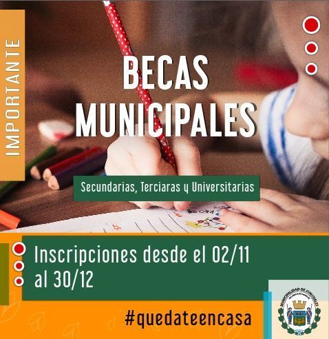 ABIERTA LA CONVOCATORIA A INSCRIPCIÓN A BECAS MUNICIPALES 2021 (SECUNDARIAS, TERCIARAS Y UNIVERSITARIAS) Las etapas para realizar la aplicación a las becas municipales 2021 son las siguientes: