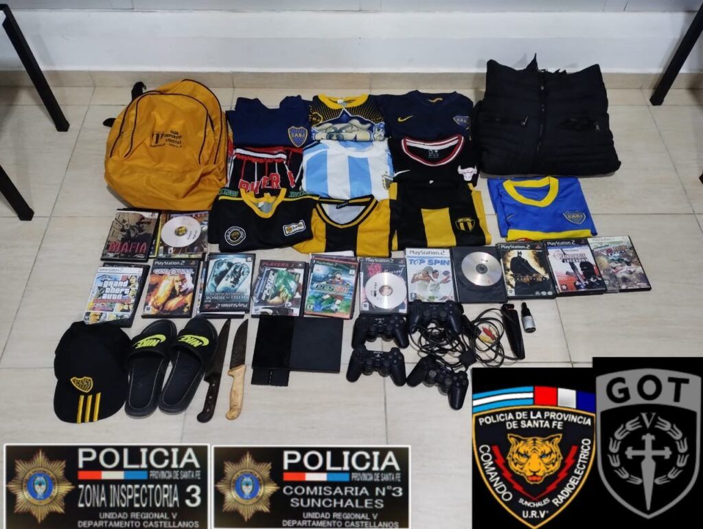 Arribados al lugar se entrevistaron con la víctima quien dio cuenta del faltante de un televisor de 32″, una play station 2, con juegos, un bolso con camisetas, una gorra de boca.