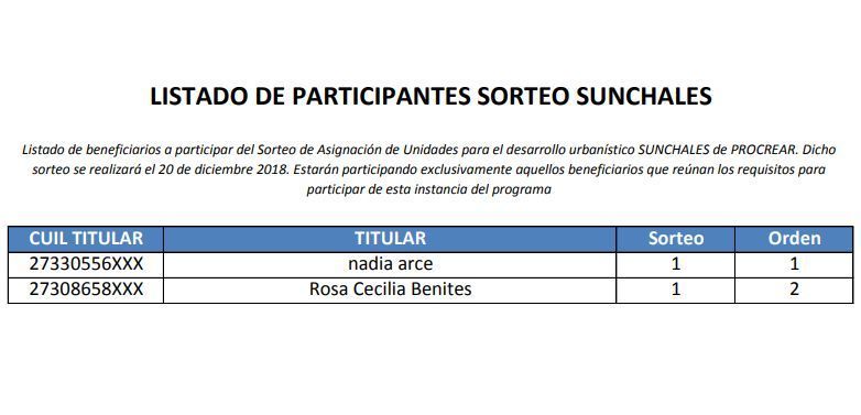 En éstas últimas horas se supo que dos familias tendrán acceso al techo propio, tal es el caso de Nadia Arce y Rosa Cecilia Benites, quienes resultaran adjudicatarias durante el último sorteo del día 20 de diciembre según figura en el sitio oficial de ProCreAr.