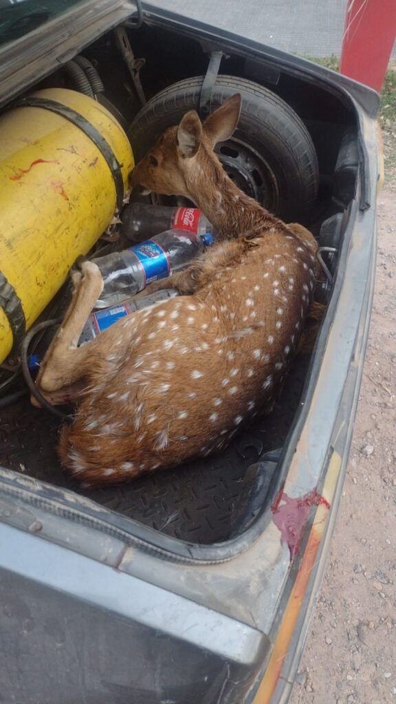 Se trató de un ciervo axis, llamado popularmente “Bambi”, por el icónico personaje animado de Disney de la misma especie animal. El mismo había sido visto atacado por un grupo de perros, y fue rescatado por una vecina que lo resguardó y trasladó a una veterinaria.