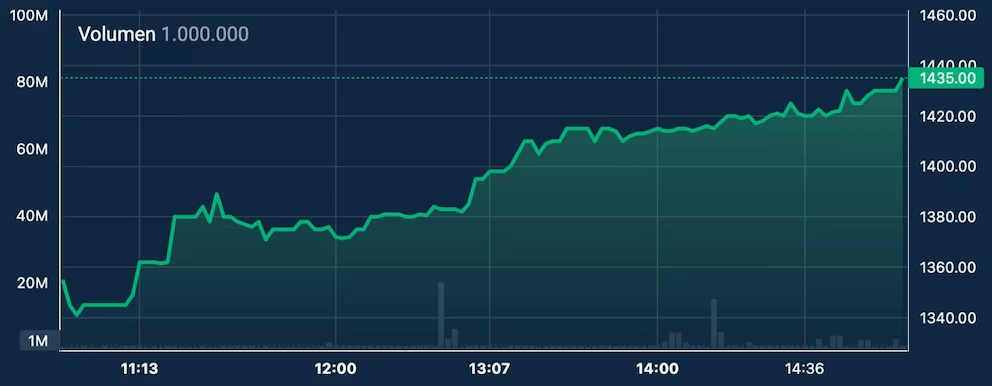 El volumen negociado en el segmento de contado alcanzó los USD 405,4 millones, una cifra que representó casi la mitad de lo operado en las ruedas de las últimas dos semanas. El dólar mayorista operó de menor a mayor, pues en los primeros negocios de este lunes llegó a marcar un precio mínimo de $1.350 (baja de $142 o 9,5% respecto del viernes), mínimo en un mes, pero sobre el cierre se acomodó en los $1.435, con un descenso de 57 pesos o 3,8 por ciento.