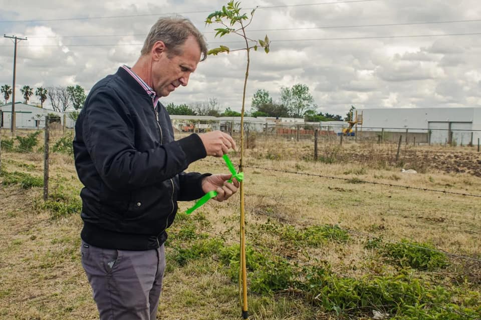 Durante la jornada de este martes, Gonzalo Toselli estuvo en calle San Juan y fue protagonista de la plantación de 100 ejemplares en el marco del compromiso sunchalense por los 10.000 árboles.