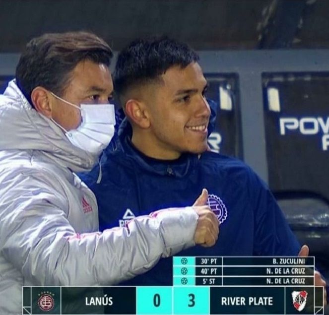 Anoche, una vez terminado el partido contra River con triunfo para el Millonario 3-0, el sunchalense le pidió una foto a Marcelo Gallardo. El DT dio el OK y la imagen fue captada por la TV.