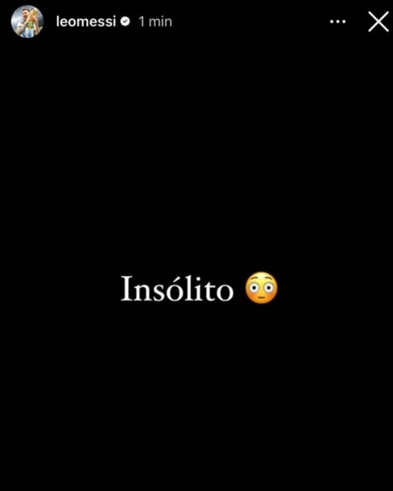 Tras el escándalo que dejó a la selección sin puntos en el debut, Messi publicó una historia en su cuenta de instagram muy elocuente: escribió "insólito" (en mayúsculas) junto a un emoji de sorpresa.