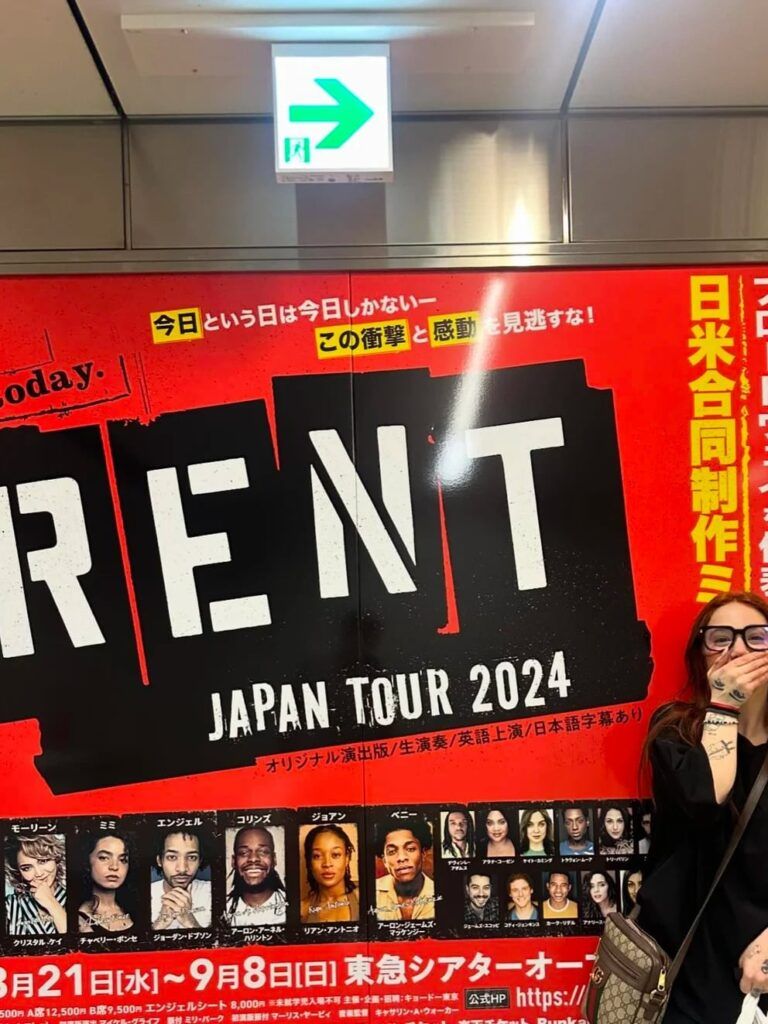 Además, la nieta de Lolita Torres aprovechó para posar con un afiche de la versión japonesa de Rent, en alusión al proyecto que encabezó hace poco tiempo y que, por estas horas, se supo está entre las obras más nominadas a los Premios Hugo.