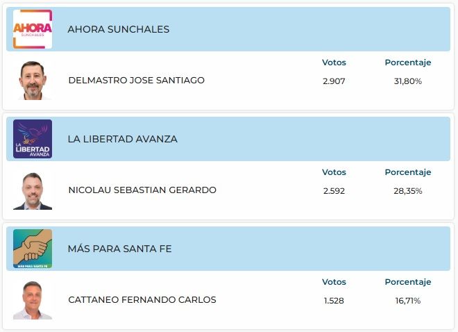 En el segundo puesto quedó La Libertad Avanza con Nicolau a la cabeza y tercero Cattaneo del PJ, que concretó la gran sorpresa del domingo. ¿La decepción? Unidos para Cambiar Santa Fe.