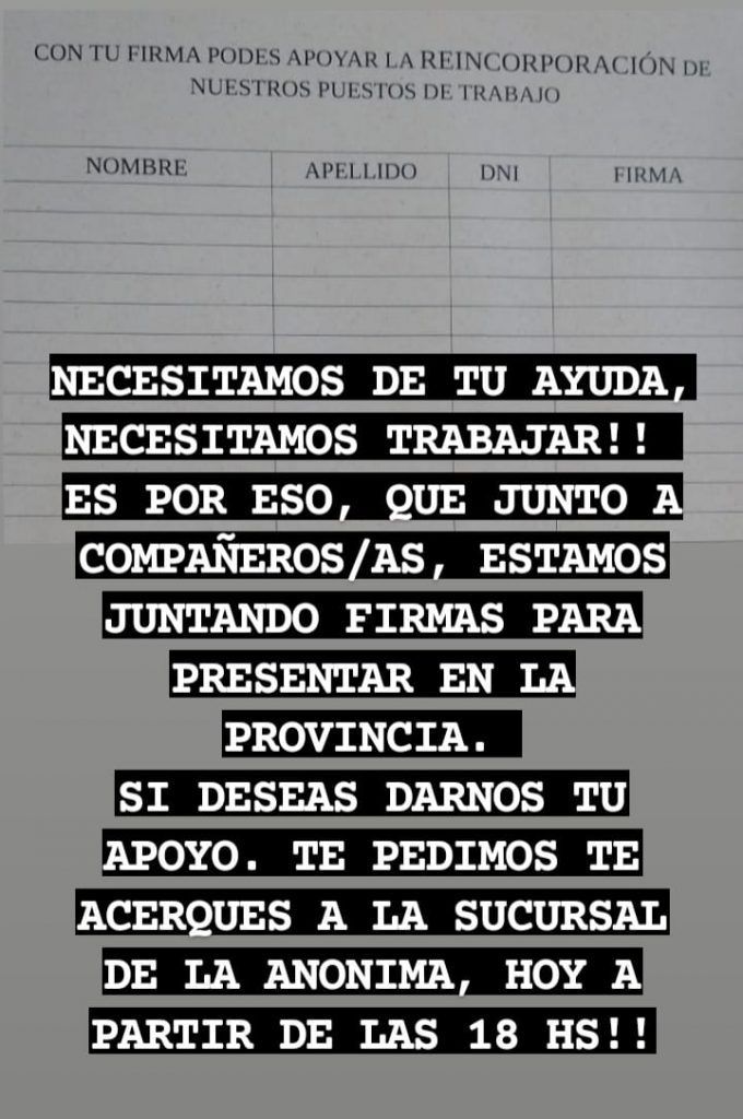 Los 47 empleados que viven en la incertidumbre desde hace más de un mes, anhelan recuperar sus puestos laborales y para ello piden la colaboración de la comunidad.