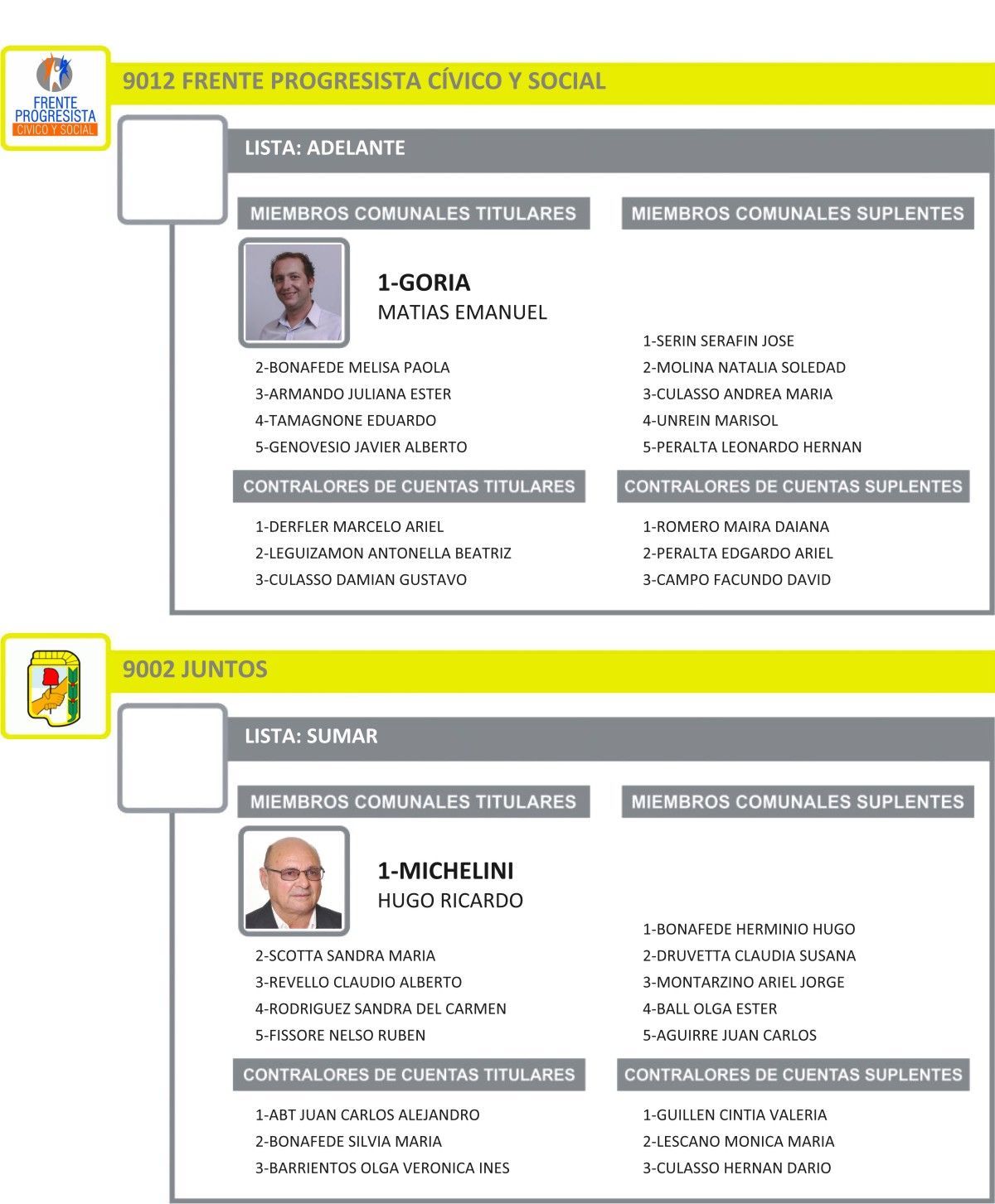A continuación le presentamos las listas completas tal como las oficializó la Tribuna Electoral de Santa Fe.