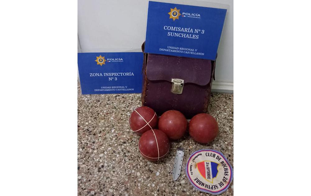 En la madrugada de este viernes 28, agentes de Comisaría Tercera hallaron un bolso de cuero, que en su interior contenía cuatro bochas, una cuña y un paño circular.