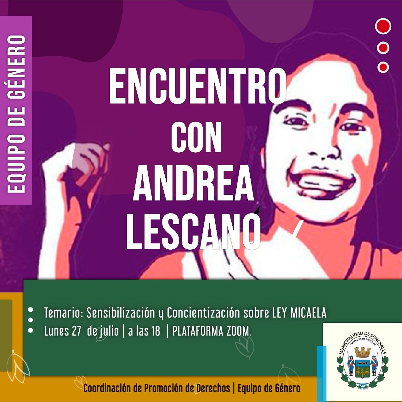 La Municipalidad de Sunchales invita a participar de una charla virtual con Andrea Lescano, mamá de Micaela García.