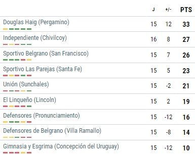 Mientras tanto, el pasado sábado los entrerrianos perdieron en casa 0-1 ante el puntero y miran de reojo a Gimnasia (CdU), equipo que actualmente está perdiendo la categoría.