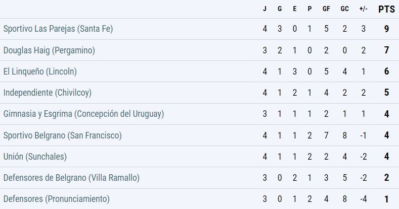 Tiene 7 puntos y es el único escolta de Sp. Las Parejas, que suma 9.