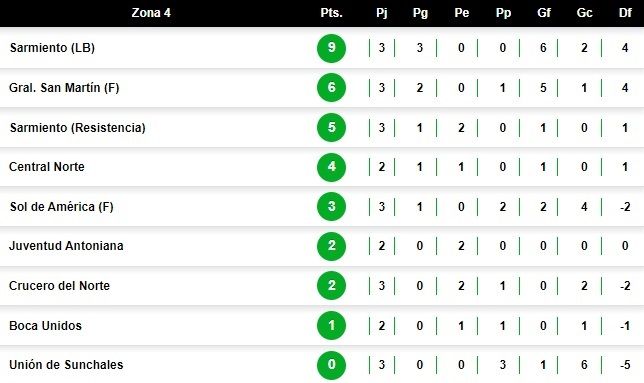 De este modo, Central Norte alcanzó las cuatro unidades, luego de empatar con Boca Unidos por la fecha 2. Unión todavía no ha sumado y se encuentra en el fondo del pelotón.