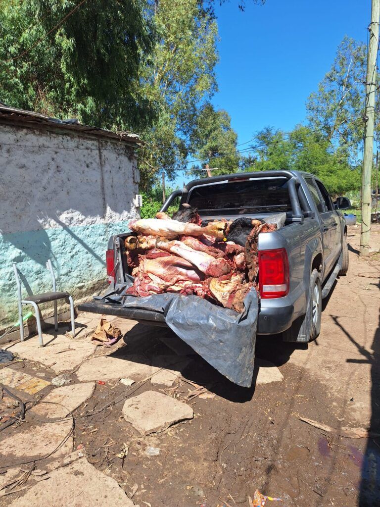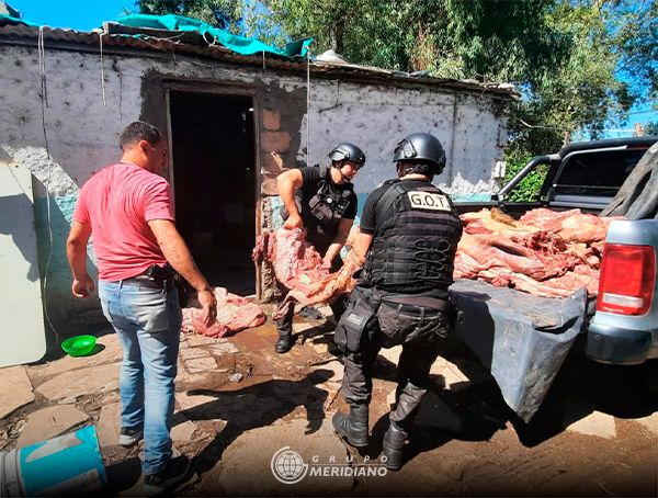 La semana pasada la Justicia dictaminó el derribo de un punto de venta de drogas en Frontera. Hoy cuando la Policía fue a constatar el sitio encontraron kilos de carne recién faenada. Un delincuente intentó escapar a los tiros y lo detuvieron.