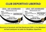 El Club Deportivo Libertad cumplirá el próximo lunes 25 de mayo sus 105 años de vida institucional y para celebrarlo está organizando un gran festejo en el salón de Fiestas aurinegro. La cena y baile será el viernes 5 de junio a la hora 21:00.