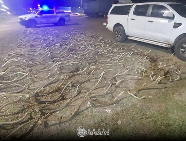 De la inspección de la caja del rodado, los uniformados constataron la existencia de 400 astas de ciervo (con un pesaje total de 240 kilos) de diferentes tamaños, las cuales eran trasladadas sin la guía correspondiente.