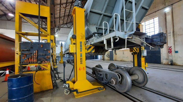 Dicho establecimiento, cuenta ahora con una prensa para la colocación de ruedas en los ejes y un puente grúa para el manejo de los pares montados.
