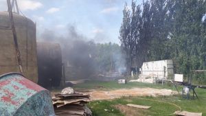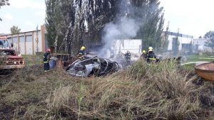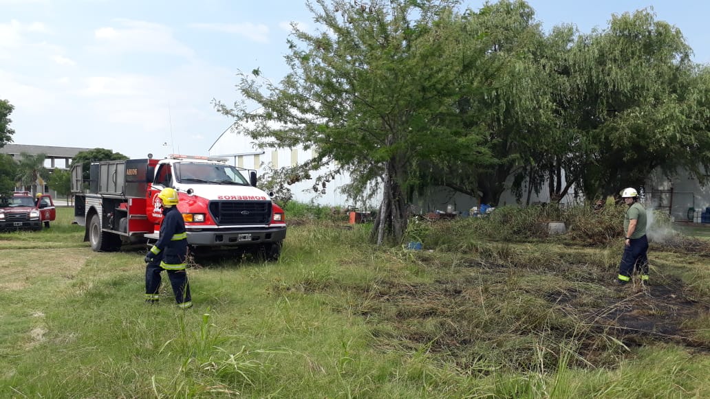 Al llegar al lugar estas versiones fueron desestimadas y como único medio en el lugar brindamos una cobertura de Facebook Live (ver), el rápido accionar de los Bomberos Voluntarios permitieron sofocar el fuego que se inició en unos pastizales del patio de un industrial dedicado a la fabricación de piezas de fibra de vidrio.