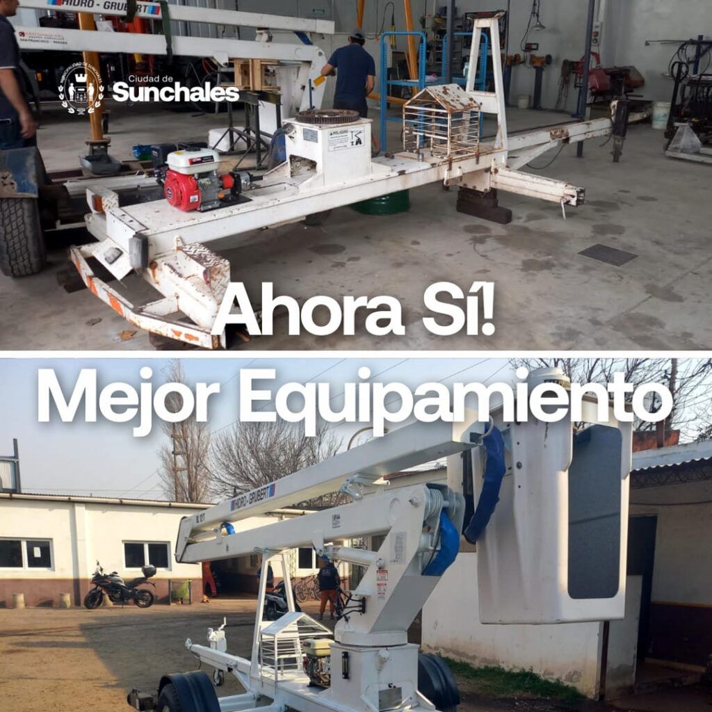 Nos alegra informar que el hidroelevador para el alumbrado público ha sido reparado y está funcionando al 100%. Con una inversión cercana a los 8 millones de pesos, el equipo ha sido restaurado en un taller especializado y está listo para realizar todas las tareas necesarias para mantener nuestra ciudad bien iluminada.