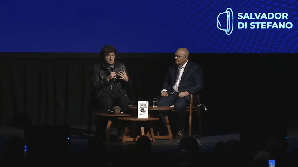 Milei dedicó gran parte de su intervención de 50 minutos a resaltar elementos técnicos del libro de Di Stefano, y sobre el final se enfocó en los avances de sus primeros meses de gestión y a delinear los retos que enfrenta su administración, al tiempo que envió un mensaje enfático de cara a las próximas elecciones de octubre. “Espero que en las elecciones los argentinos elijan por la libertad, la esperanza, el futuro que va a hacer grande a la Argentina nuevamente y no volver al pasado, que voten por su propio bien, lo otro lo probamos y ya falló”, manifestó durante el evento.