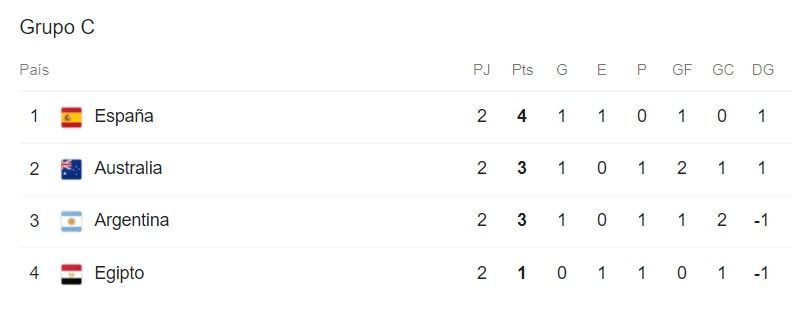 Los europeos mandan con 4 puntos, después del triunfo de este domingo 1-0 frente a Australia. El seleccionado oceánico había debutado con éxito ante Argentina (2 a 0).