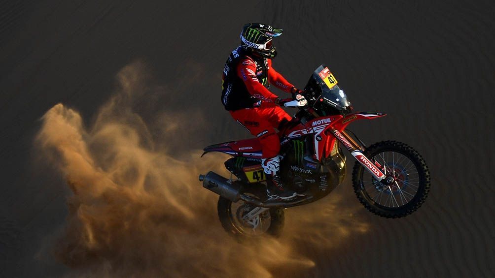 En total son 12 las especiales de la prueba que se disputa en Arabia Saudita. Nuestro compatriota mantuvo el primer puesto de la general de motos con mucho carácter.
