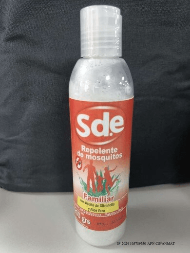 - “Repelente de mosquitos familiar con aceite de citronella y aloe vea, marca SD.E”, en todos sus lotes y presentaciones.