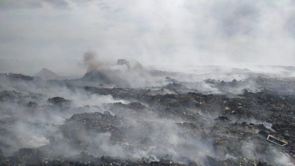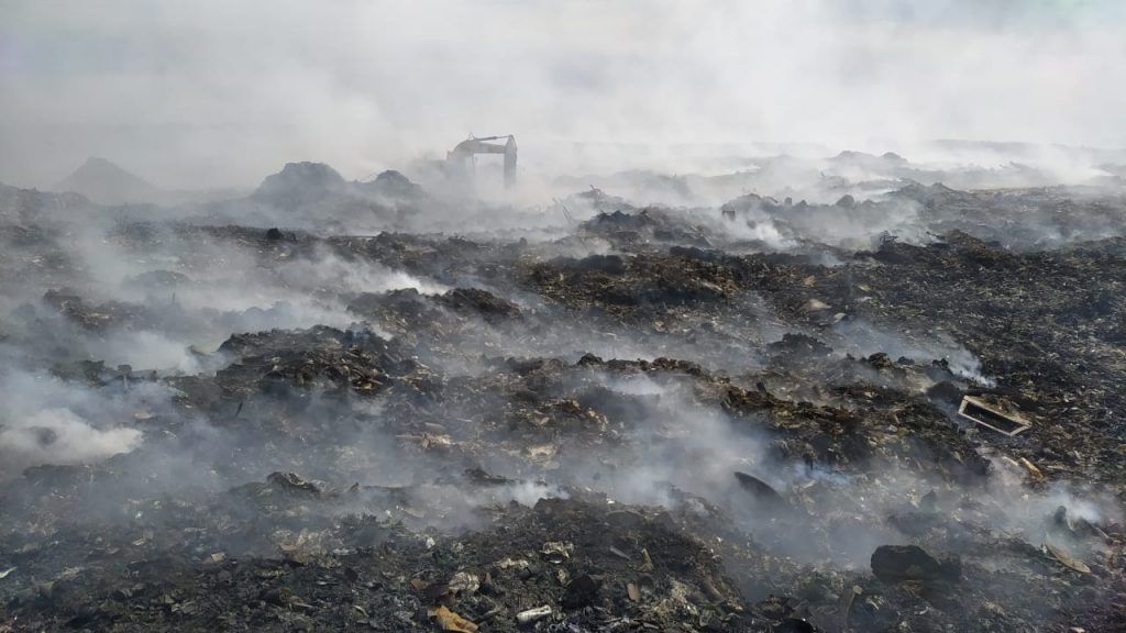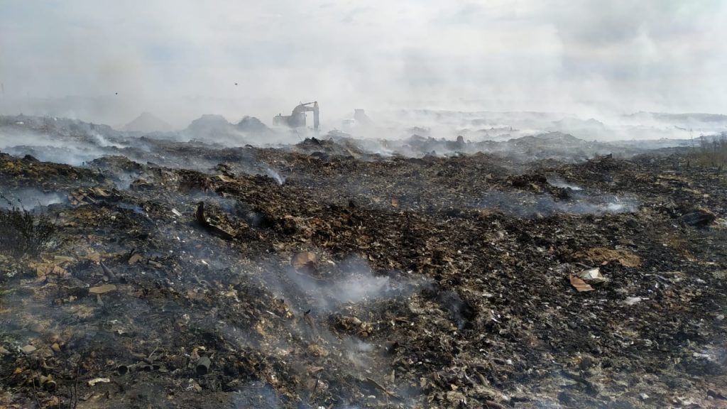 Durante la mañana de hoy aún persistía el olor a humo sobre el ejido urbano a causa del incendio que se originó el lunes por la tarde y que todavía hoy humeaba y contenía algunos pequeños focos ígneos.