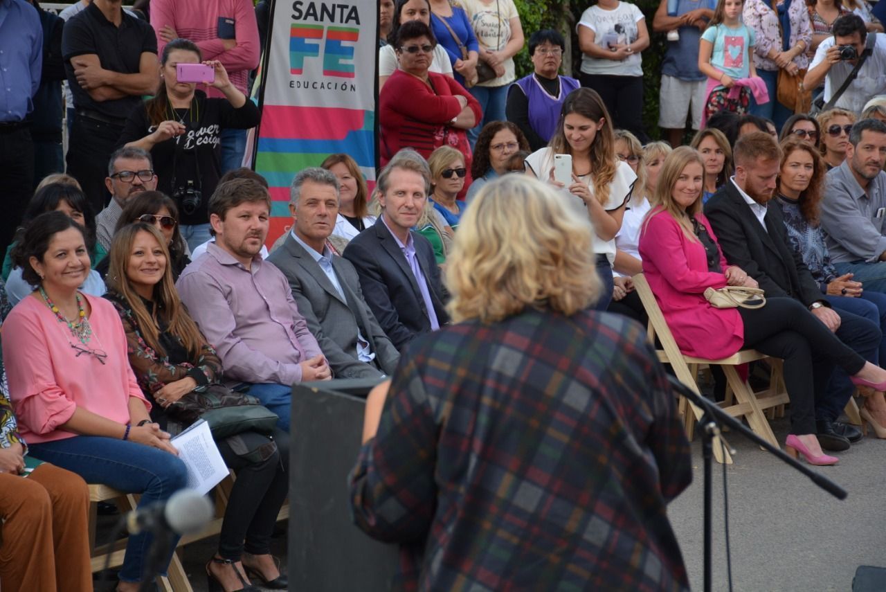 Por último, la ministra de Educación de la provincia de Santa Fe, Claudia Balagué, enfatizó: "esta escuela se suma a las 255 que fueron creadas en la provincia de Santa Fe en los últimos doce años.” También, expresó: “son miles de chicos que antes no tenían oportunidades de tener un título secundario y hoy lo tienen en la provincia de Santa Fe, cerca, en su ciudad, en su barrio. Hay hoy también una escuela secundaria para la ruralidad y todos esos lugares conforman el inmenso sistema educativo que tenemos, con casi 5.000 instituciones de todos los niveles y modalidades”.