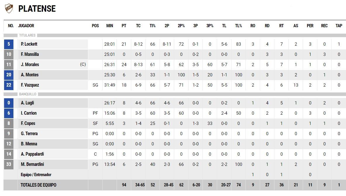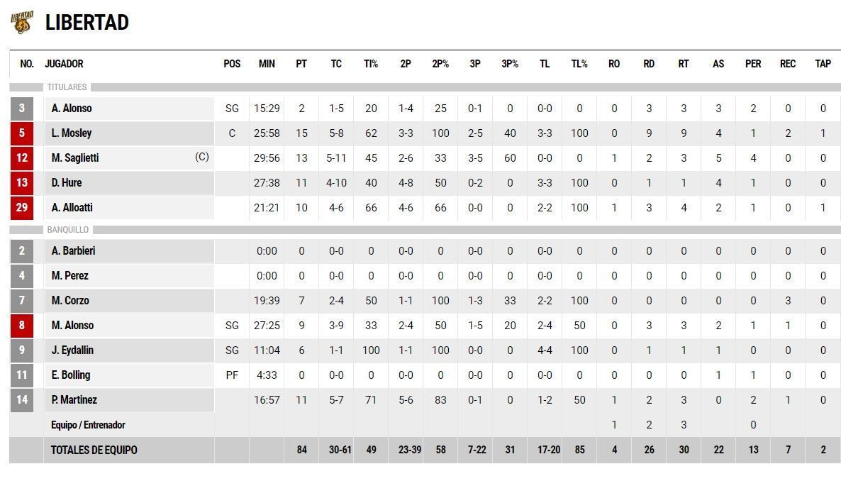 Fue 94 a 84 a pesar de un arranque esperanzador (20 a 9) con dos bombazos de Saglietti y otro par de Mosley. El quinteto de calle Dentesano se llevó el primer chico 30-23 con una gran ofensiva.