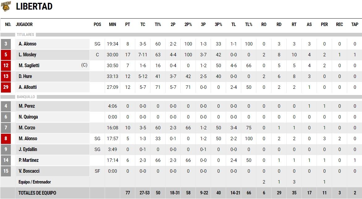 Un escopetazo de Manuel Alonso a 29 segundos del cierre y una posterior gran defensa de Latraius Mosley sobre Gregorio Eseverri terminaron de inclinar la balanza para el lado de Libertad.