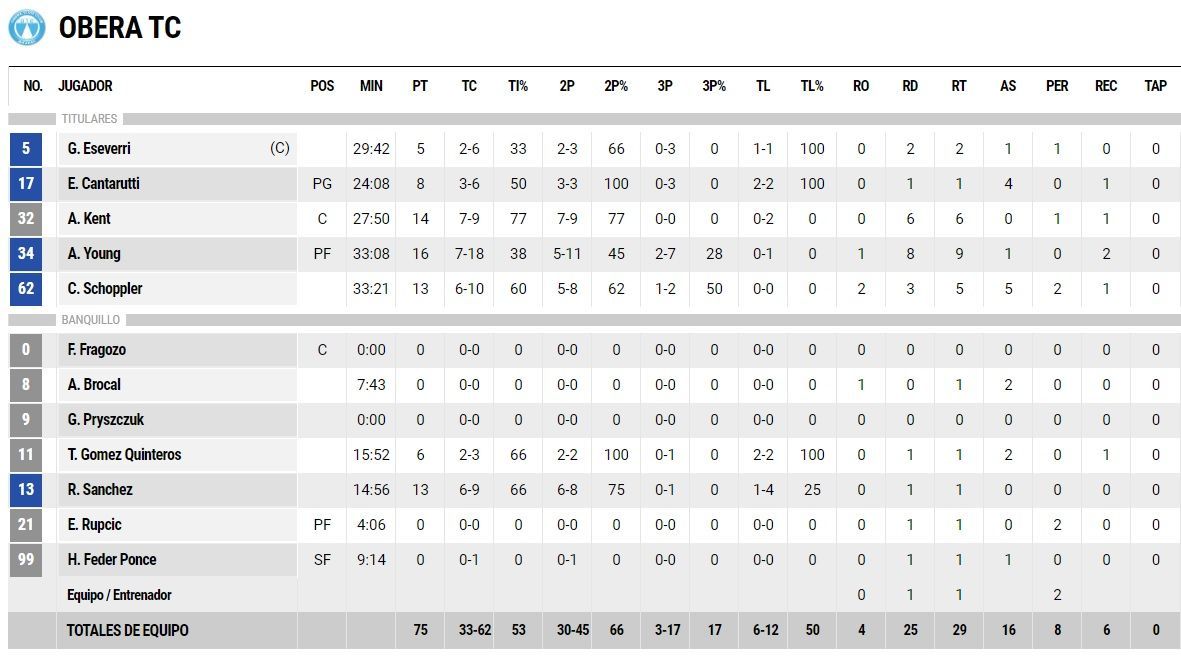 De hecho, Oberá se llevó el primer tiempo 39-32 y en el relanzamiento se escapó 47 a 34. El celeste parecía ir resolviendo la historia.