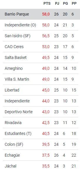 Posiciones – Conferencia Norte 👇